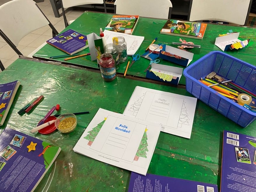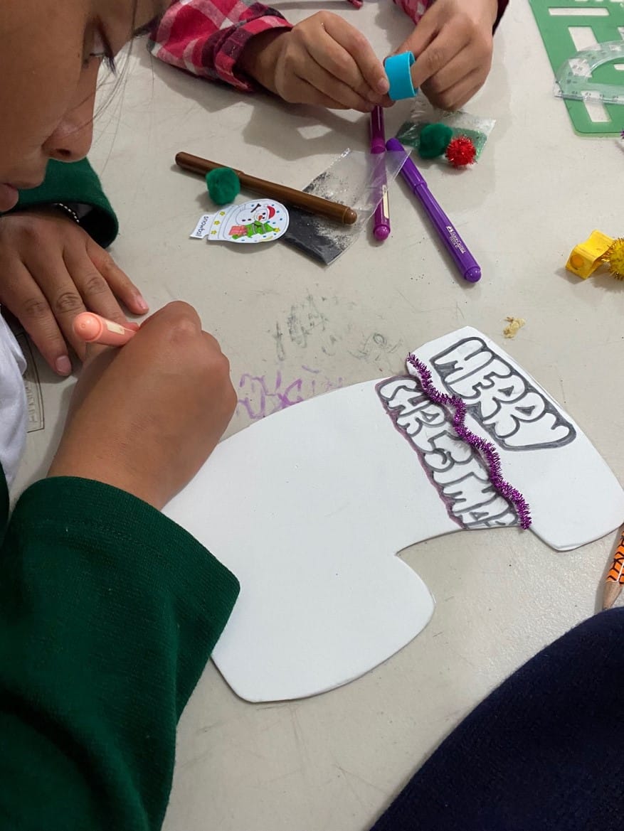 El lunes 4 de diciembre de 2023, llevamos a cabo nuestro taller de inglés a través del aprendizaje de vocabulario navideño y la realización de una bota navideña en Granja para niños la Esperanza. El objetivo es reforzar las clases de inglés a través del aprendizaje y juego.